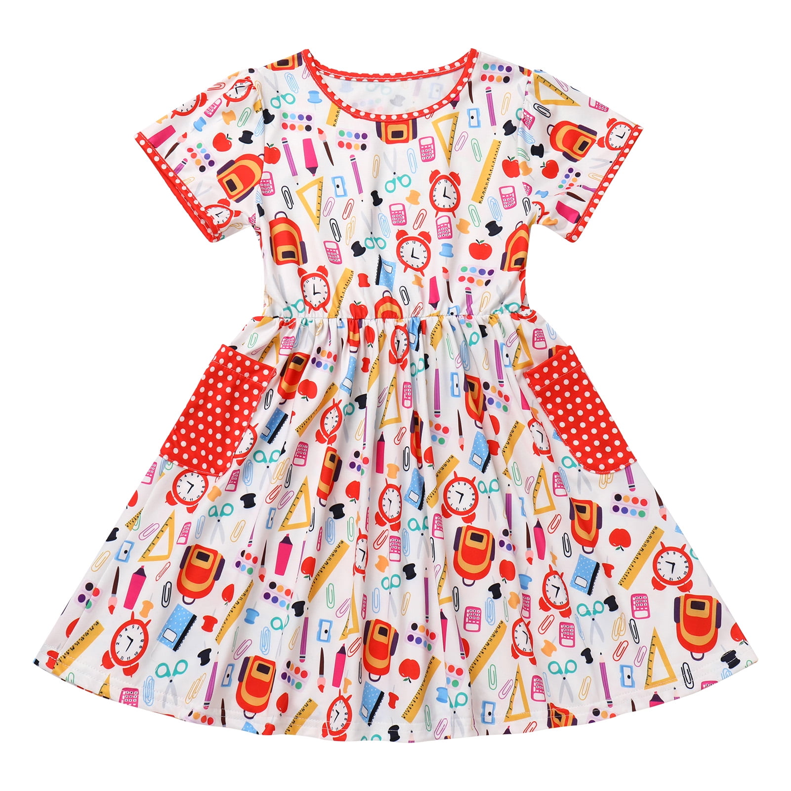 IBTOM CASTLE Kids Girls Back to School Dress Kindergarten Short Sleeve