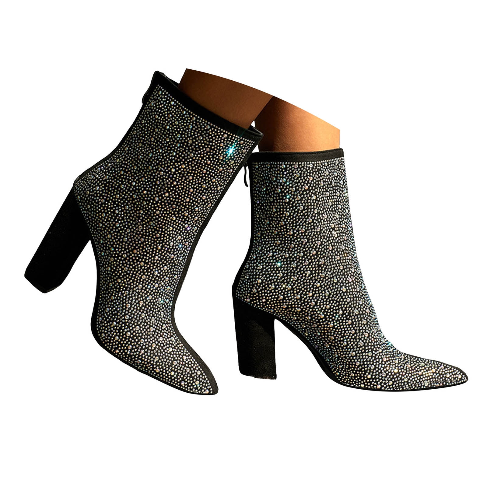 IUJSOY Glitter Rhinestone Ankle Boots for Women Pointed Toe Back Zipper