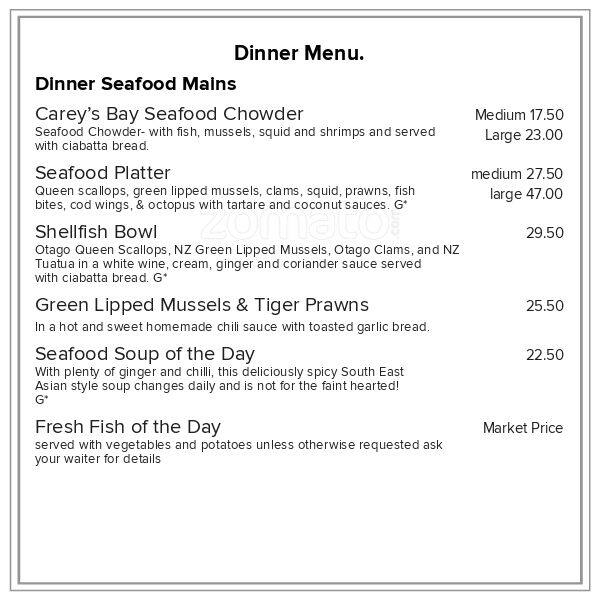 Menu at Careys Bay Historic Hotel pub bar Dunedin 17 Macandrew Rd
