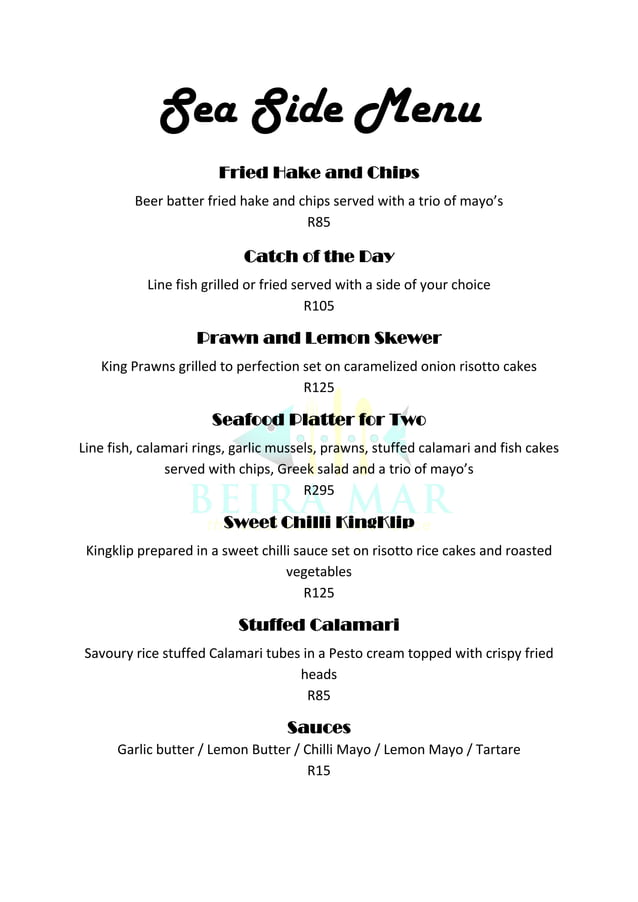 Menu at Prem #39 s Seafood Bar Grill Devonport