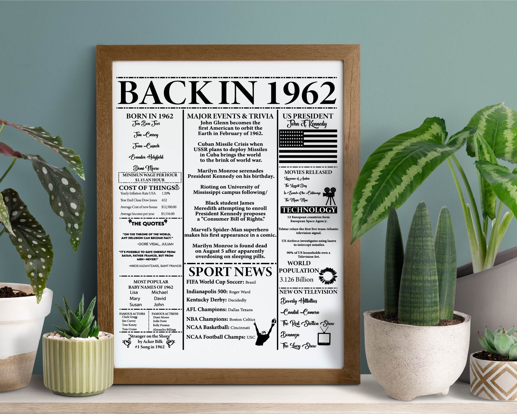 Back in 1962 newspaper poster printable 1962 printable etsy australia