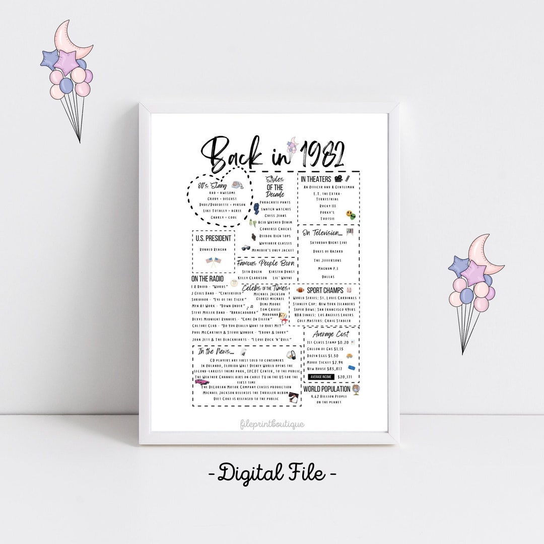 Back in 1982 Newspaper Poster / Printable / 40th Birthday Etsy
