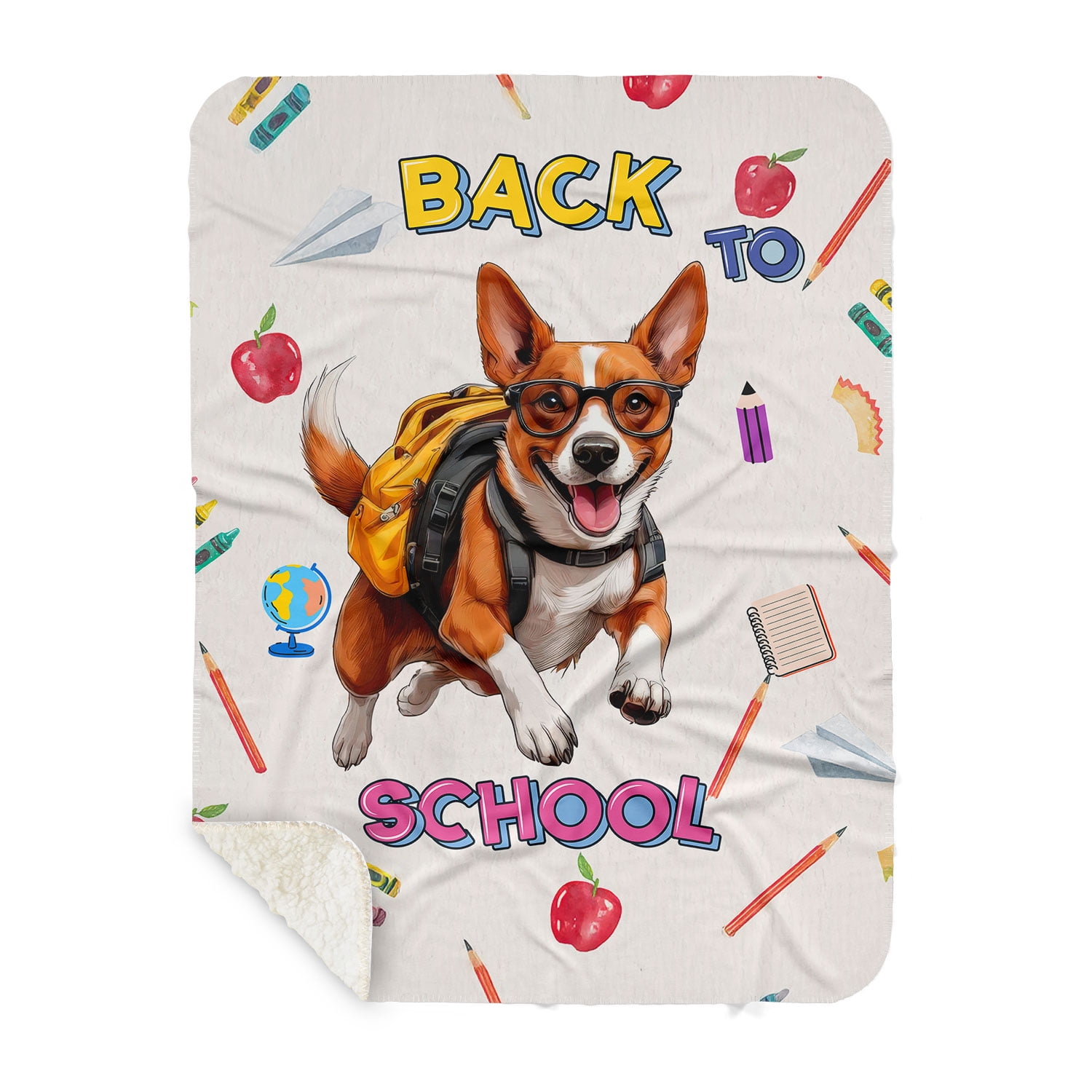 Back to School Cute Basenji Cozy Sherpa Blanket African Barkless Dog