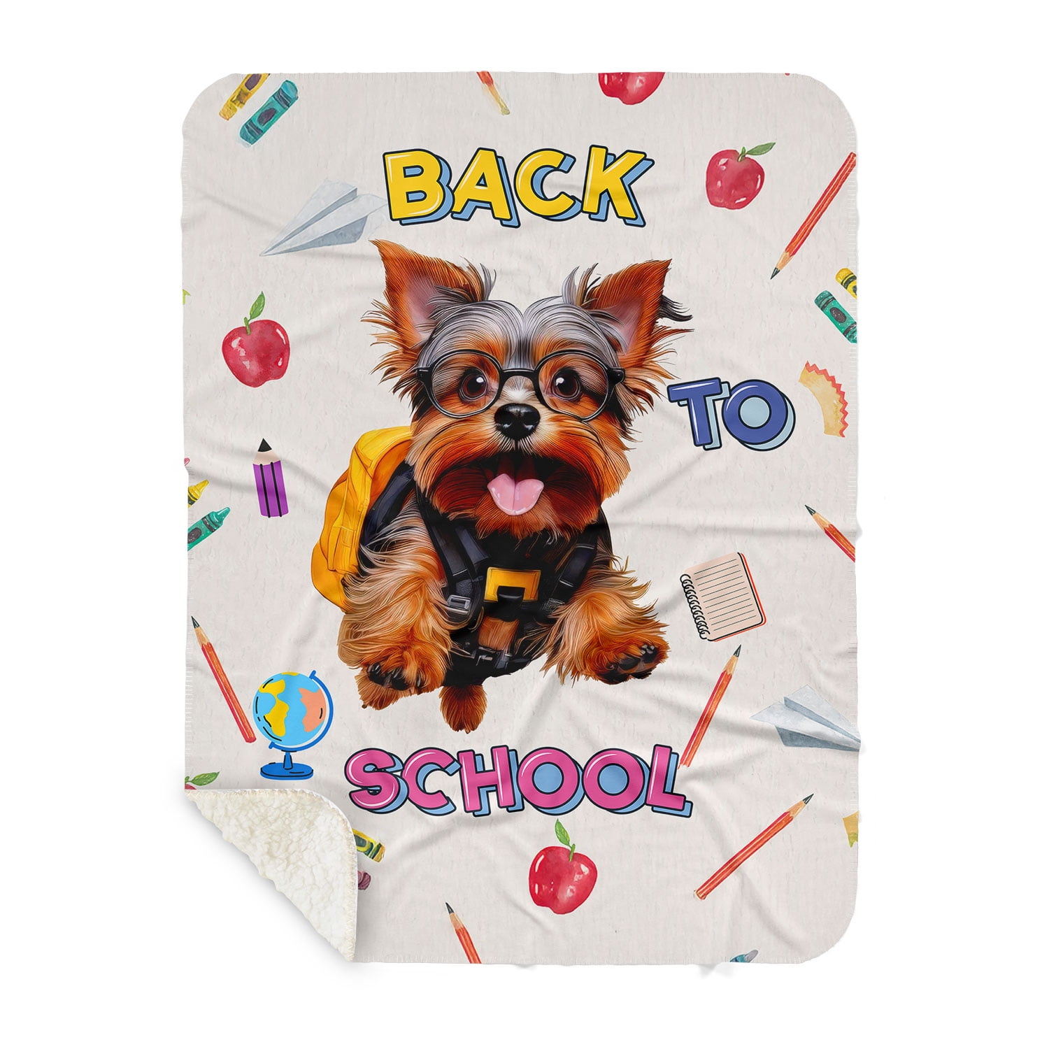 Back to School Cute Yorkshire Terrier Cozy Sherpa Blanket Yorkie Dog
