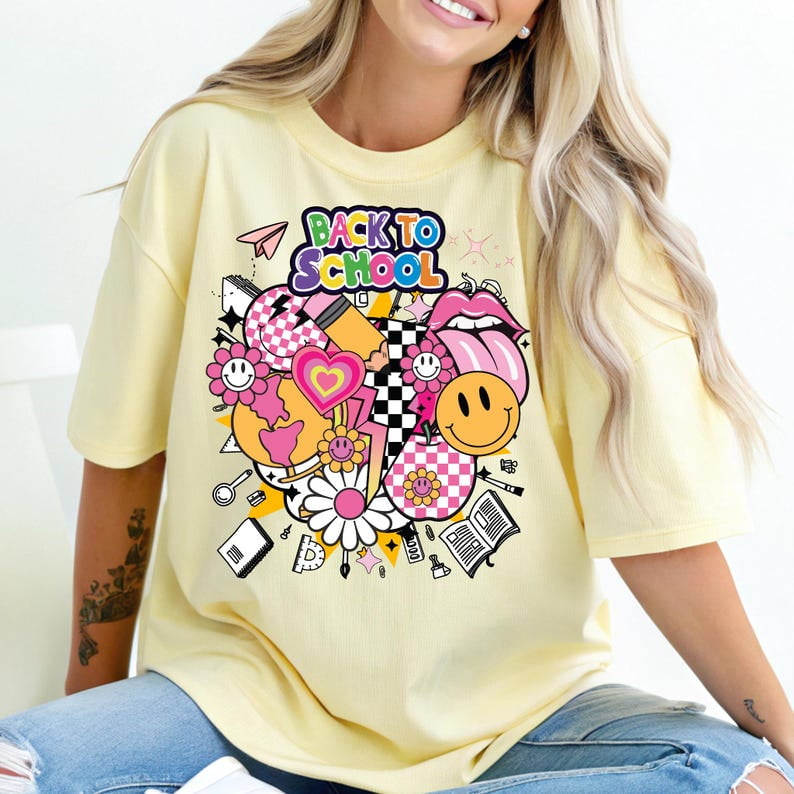 Back to School Shirt Colorful Retro Smileys Clipart Cute School