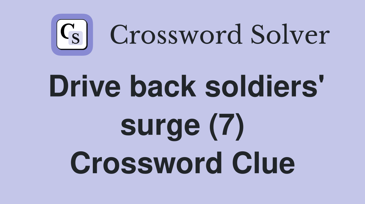 Drive back soldiers #39 surge (7) Crossword Clue Answers Crossword Solver