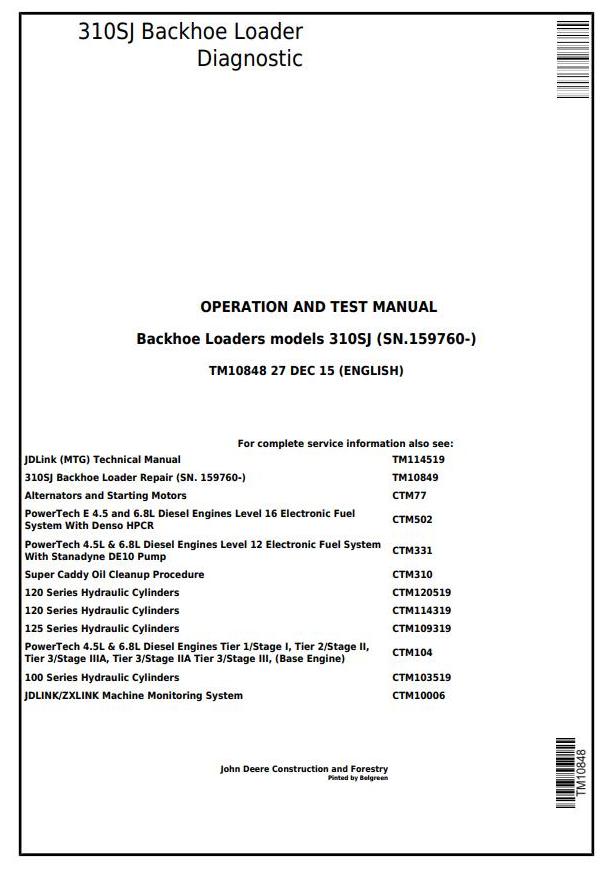 PDF TM10848 John Deere 310SJ Backhoe Loader Diagnostic and Test Servic