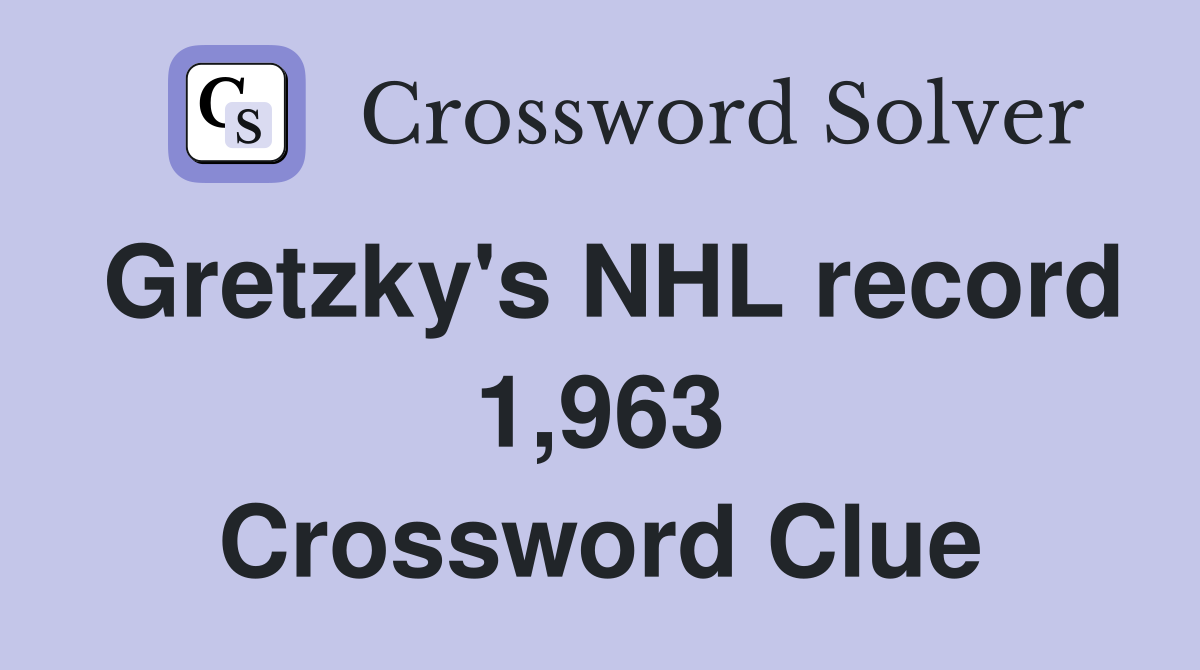 Gretzky #39 s NHL record 1 963 Crossword Clue Answers Crossword Solver