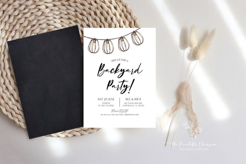 Black Backyard Party Invitation Template Editable Backyard Etsy