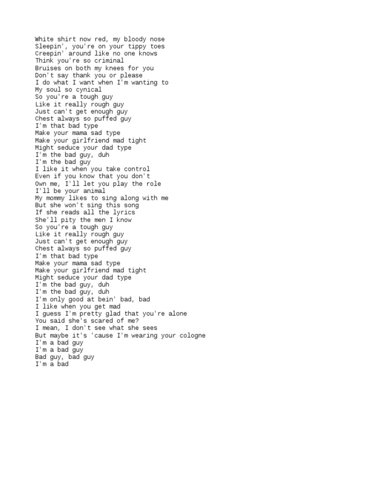 Bad Guy Lyrics Billie Eilish