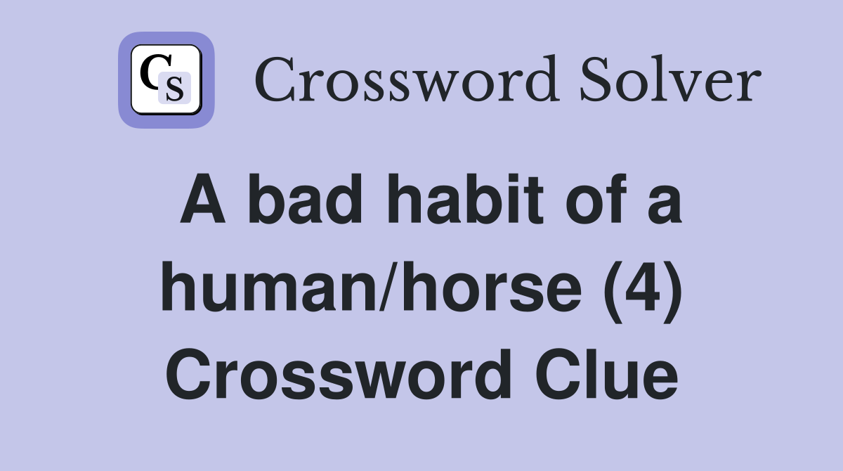 A bad habit of a human/horse (4) Crossword Clue Answers Crossword