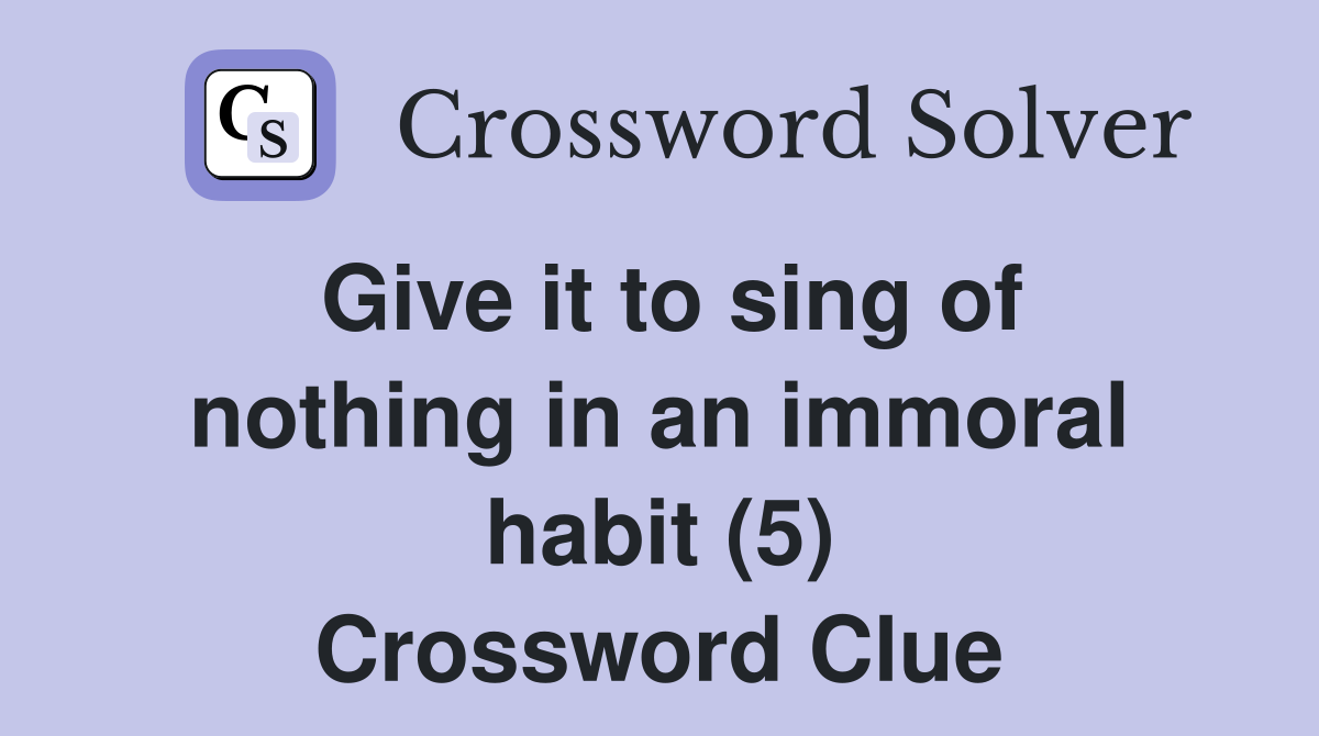 Give it to sing of nothing in an immoral habit (5) Crossword Clue