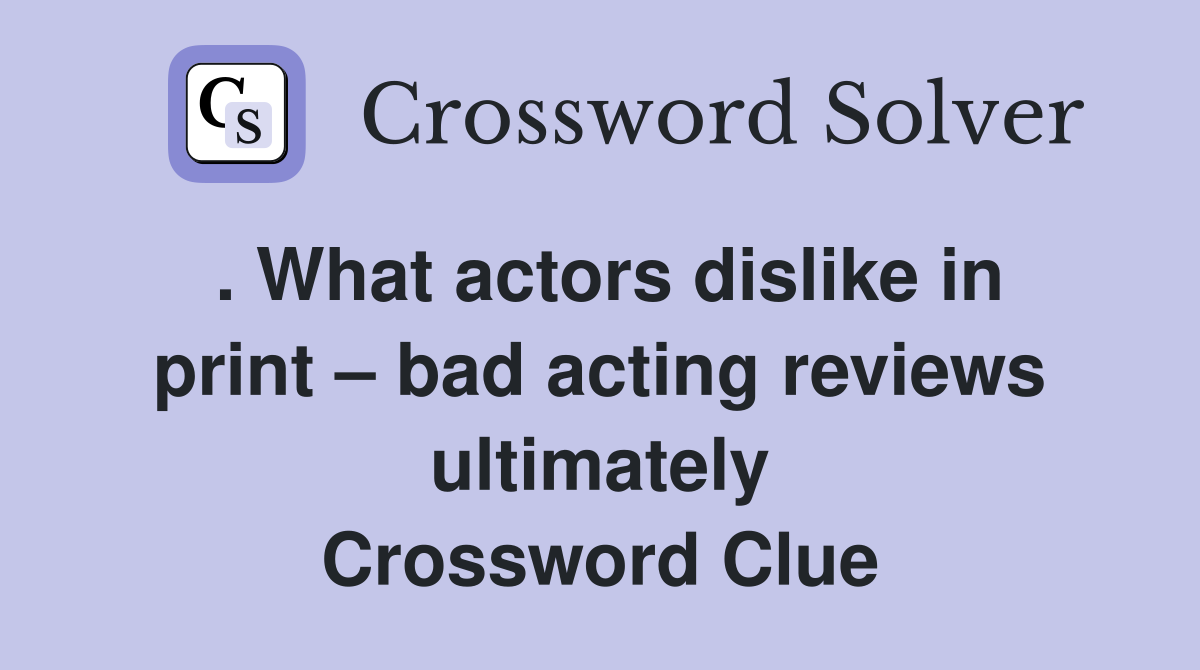 Here are some of the images for Bad Reviews Crossword Clue that we found in our website database.