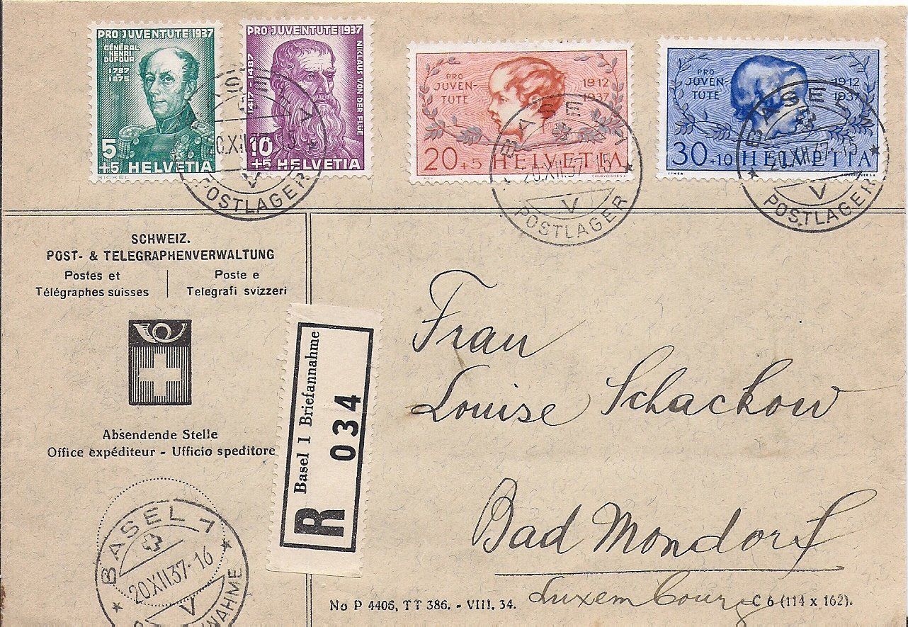 PRO JUVENTUTE No 81 à 84 sur lettre de BÂLE à BAD MONDORF (D #39 occasion