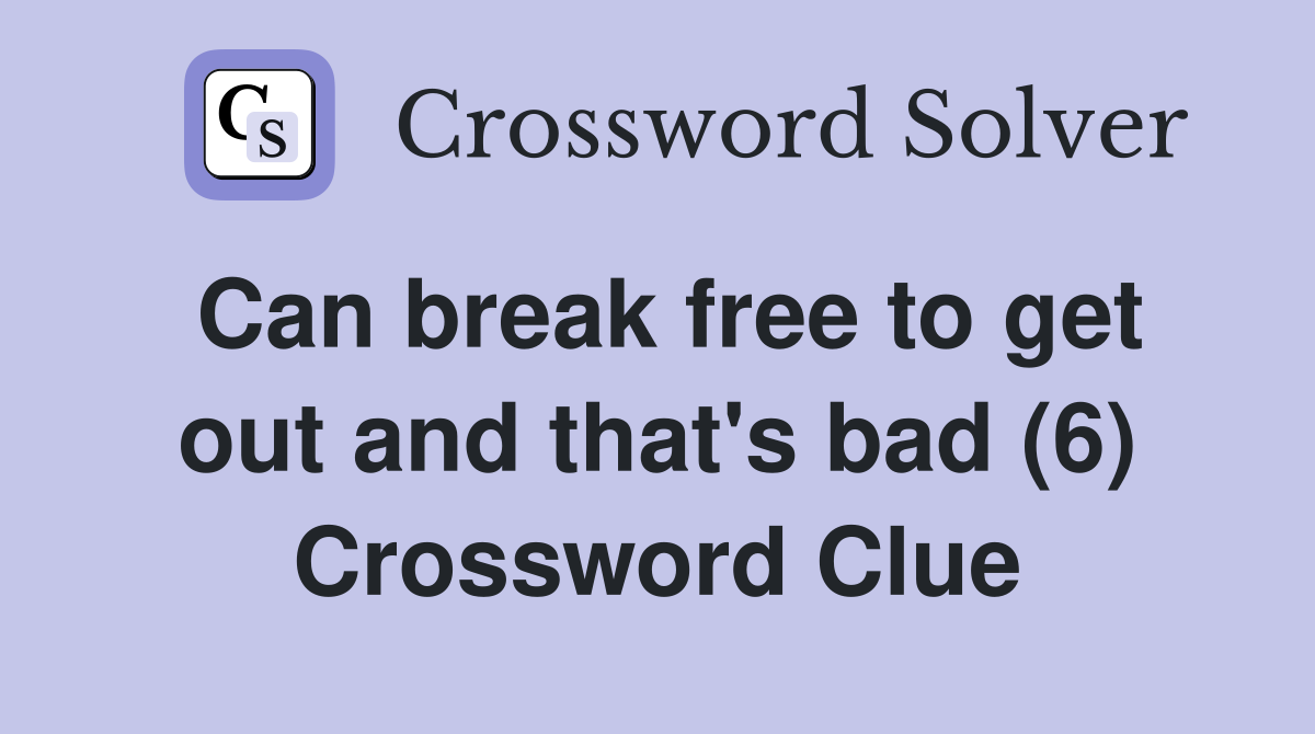 Can break free to get out and that #39 s bad (6) Crossword Clue Answers