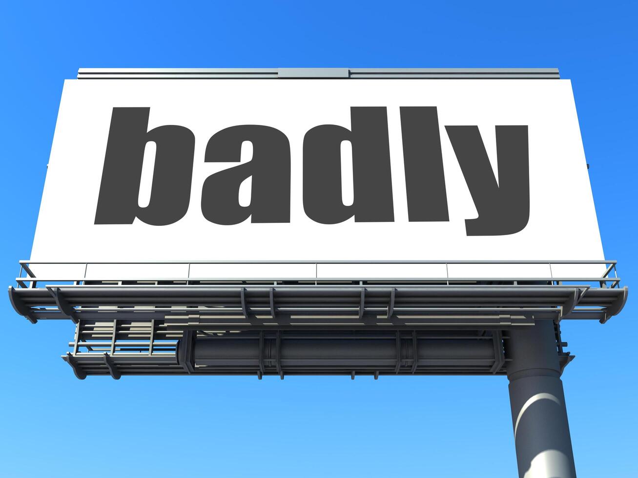 badly word on billboard 6144019 Stock Photo at Vecteezy