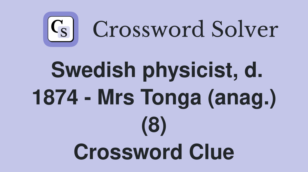 Swedish physicist d 1874 Mrs Tonga (anag ) (8) Crossword Clue