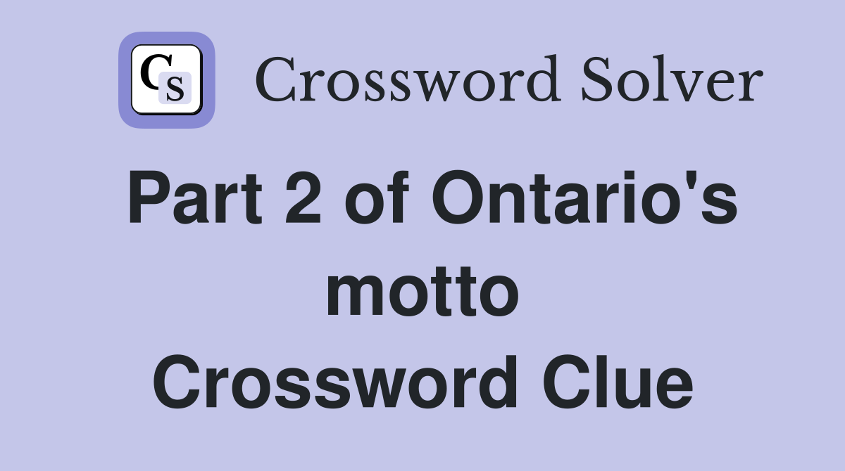 Part 2 of Ontario #39 s motto Crossword Clue Answers Crossword Solver
