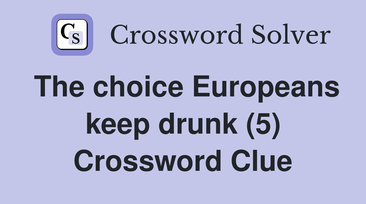 The choice Europeans keep drunk (5) Crossword Clue Answers