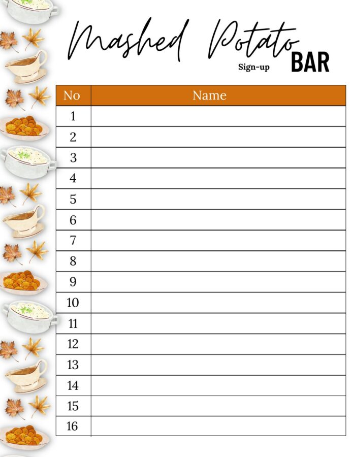 Thanksgiving Sign up Sheet Thanksgiving Mashed Potato Bar Fall Sign
