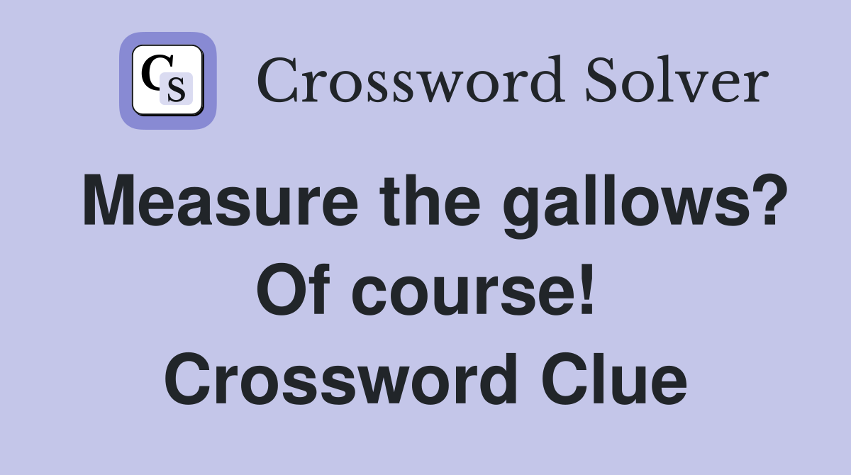 Measure the gallows? Of course Crossword Clue Answers Crossword Solver