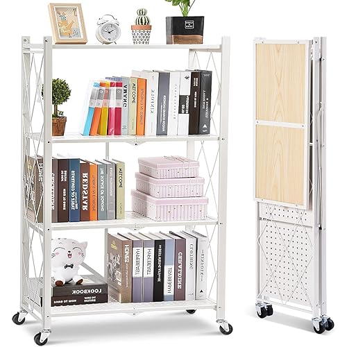TOOLF 4 Tier Foldable Shelving Unit Freestanding Metal Storage Shelf
