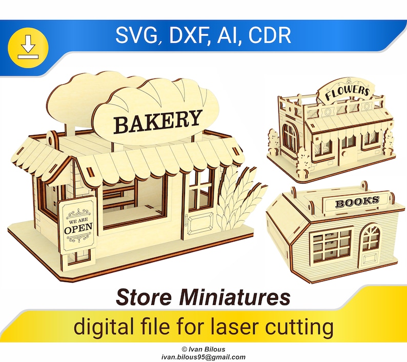 Store Miniatures Ornaments Laser Cut Files Bookstore Flower Shop