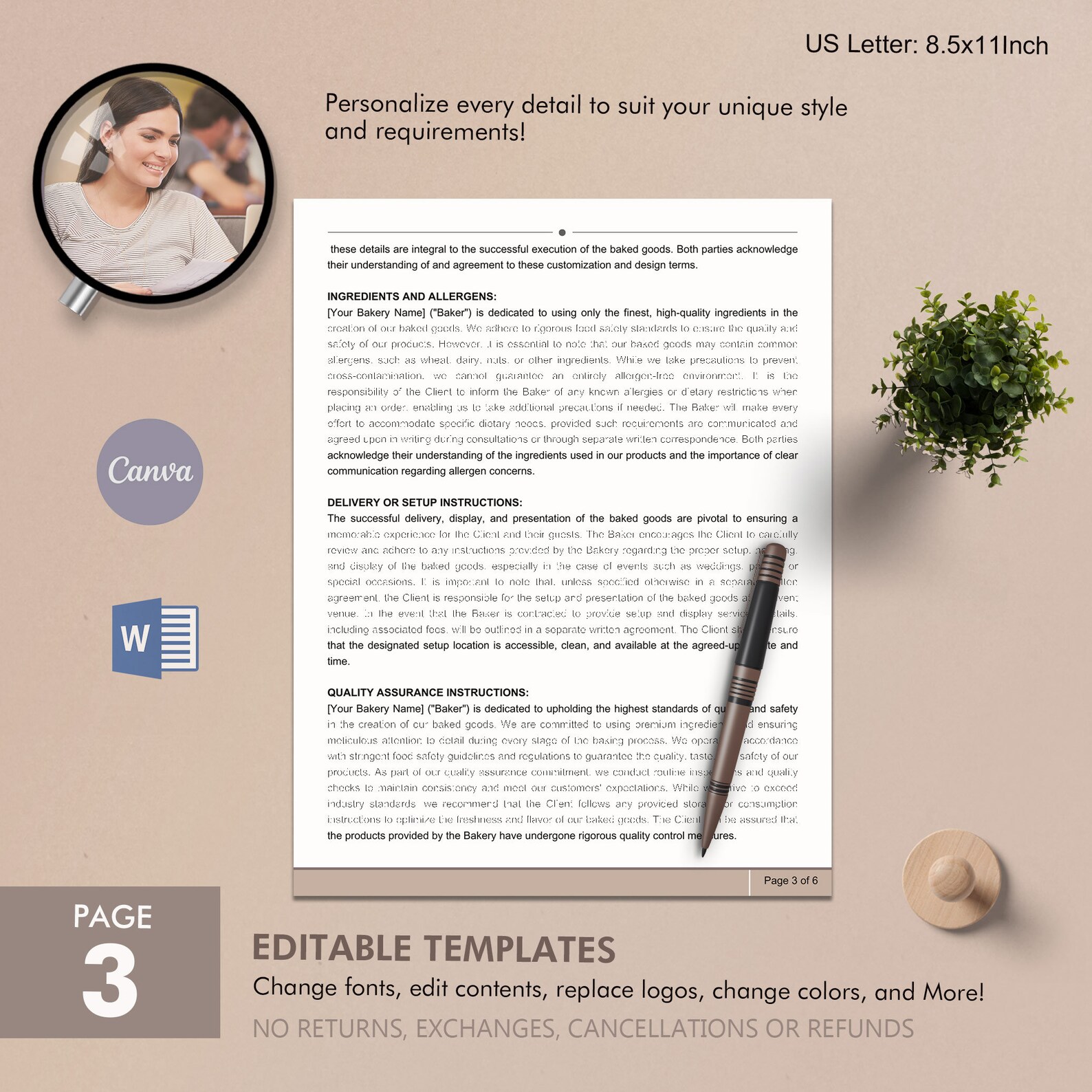Cake Contract Template Cake Baking Agreement Cake Order Etsy