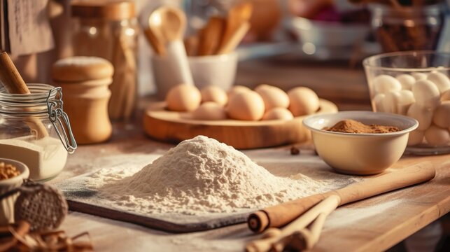 Baking Ingredients for Homemade Pastry Bake Sweet Cookies Concept
