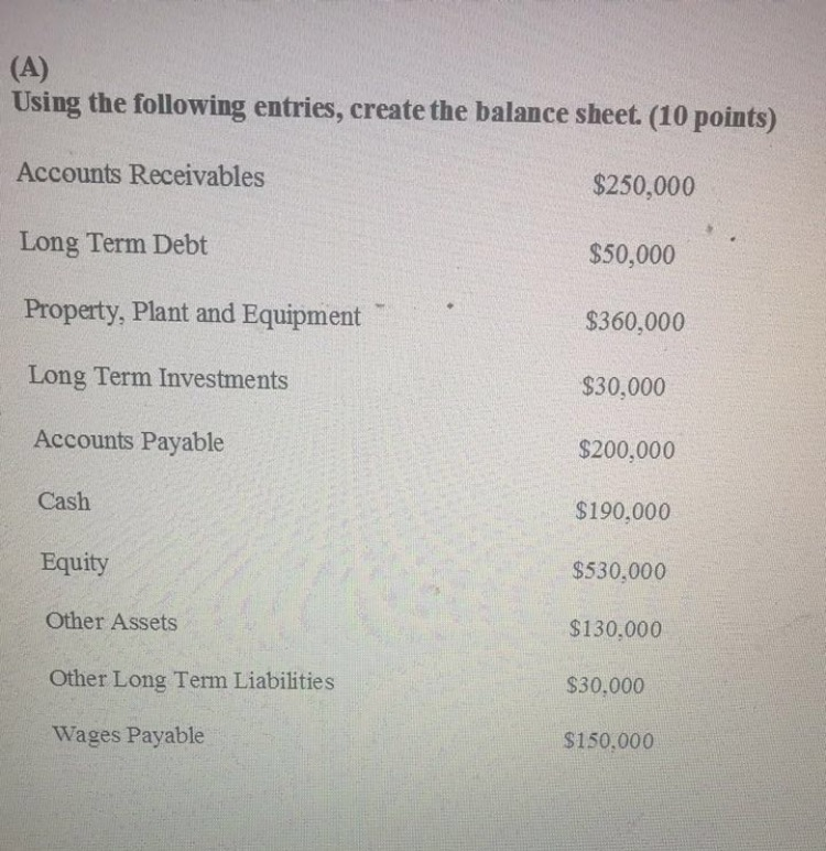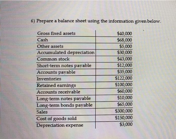 Solved 6) Prepare a balance sheet using the information Chegg com