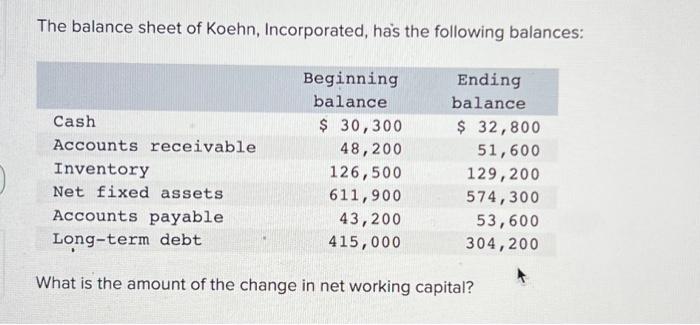 Solved The balance sheet of Koehn Incorporated has the Chegg com