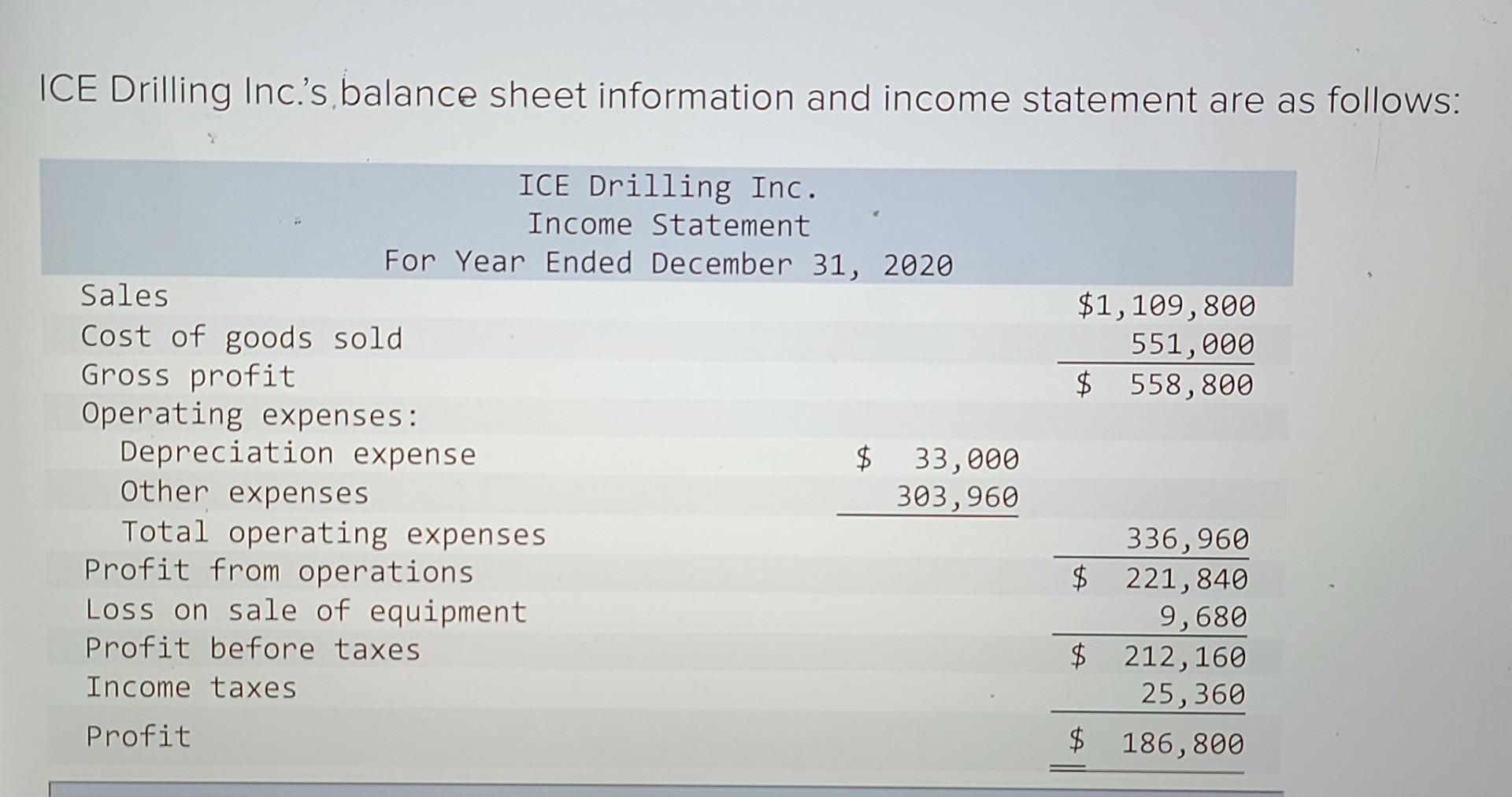 Solved ICE Drilling Inc #39 s balance sheet information and Chegg com