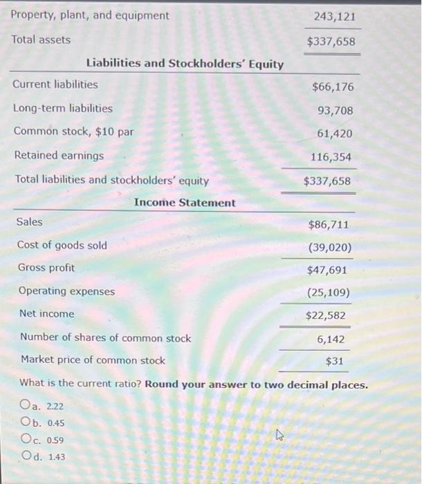 Solved: SHOW CALCULATIONS: Using The Balance Sheet Find A Chegg com