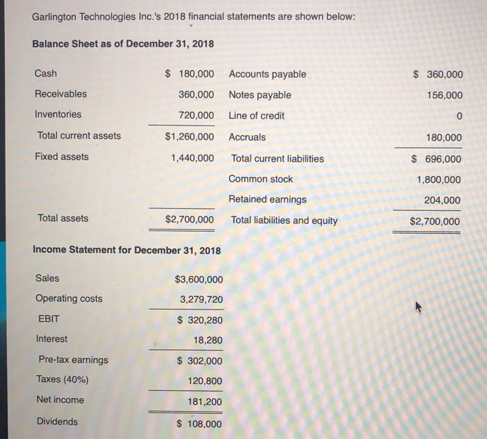 Solved Garlington Technologies Inc #39 s 2018 financial Chegg com