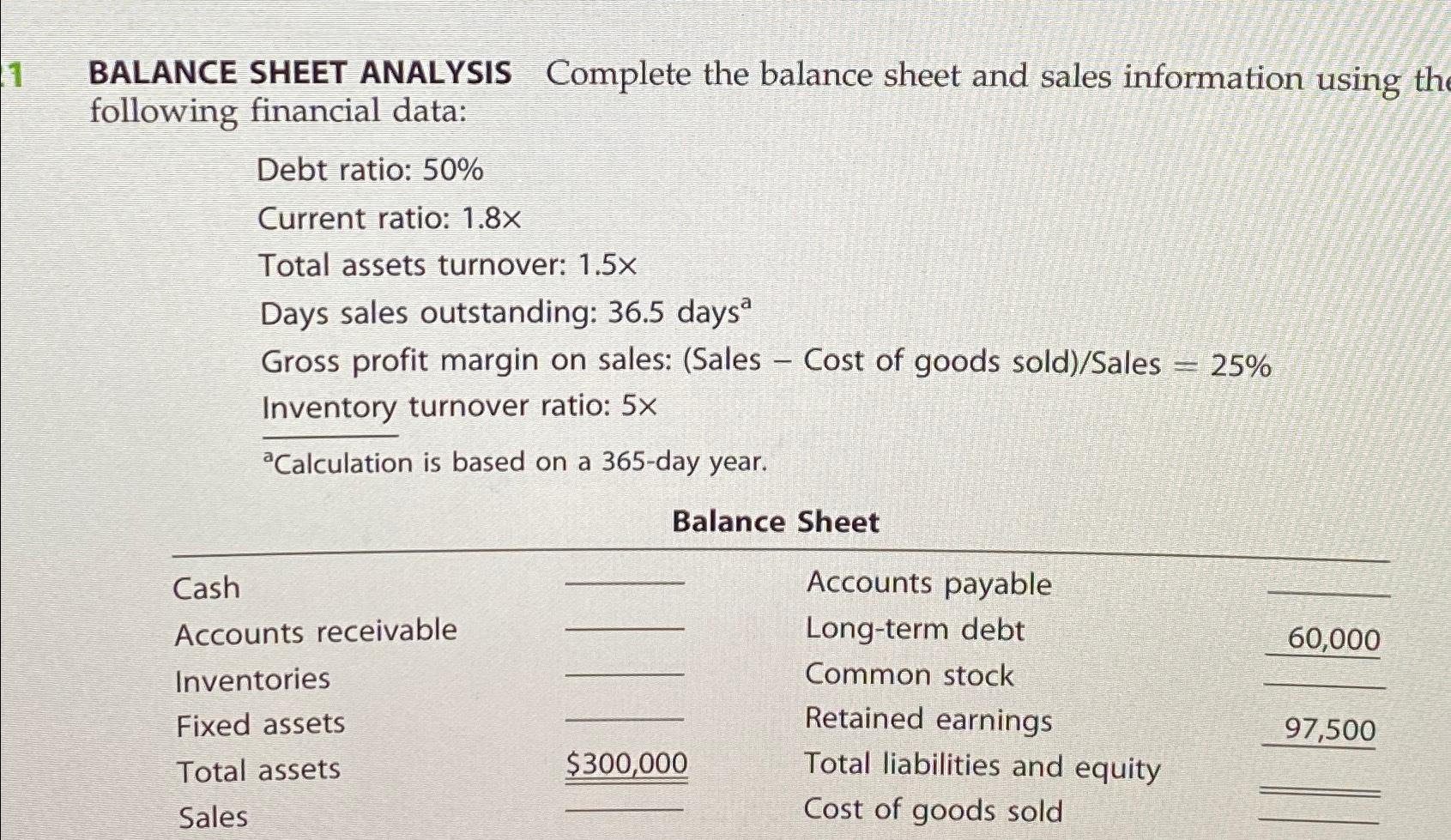Solved 1 BALANCE SHEET ANALYSIS Complete the balance sheet Chegg com