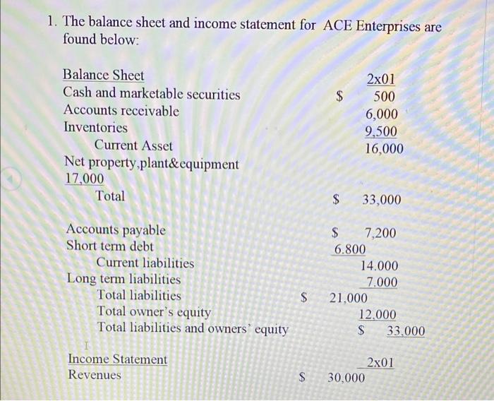 Solved 1 The balance sheet and income statement for ACE Chegg com