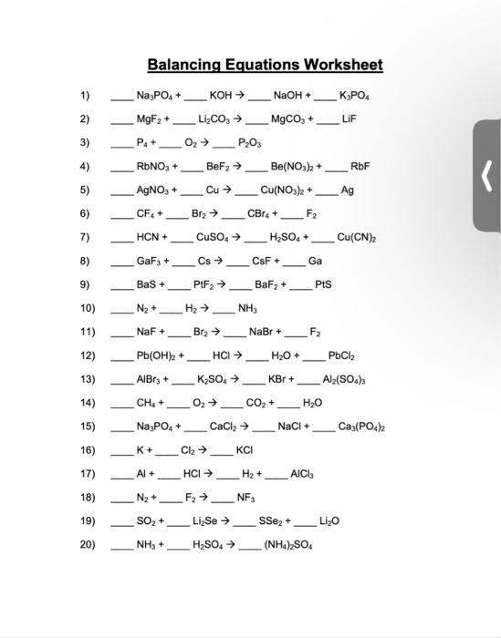 Balancing Chemical Equations With Answers Balancing Chemical