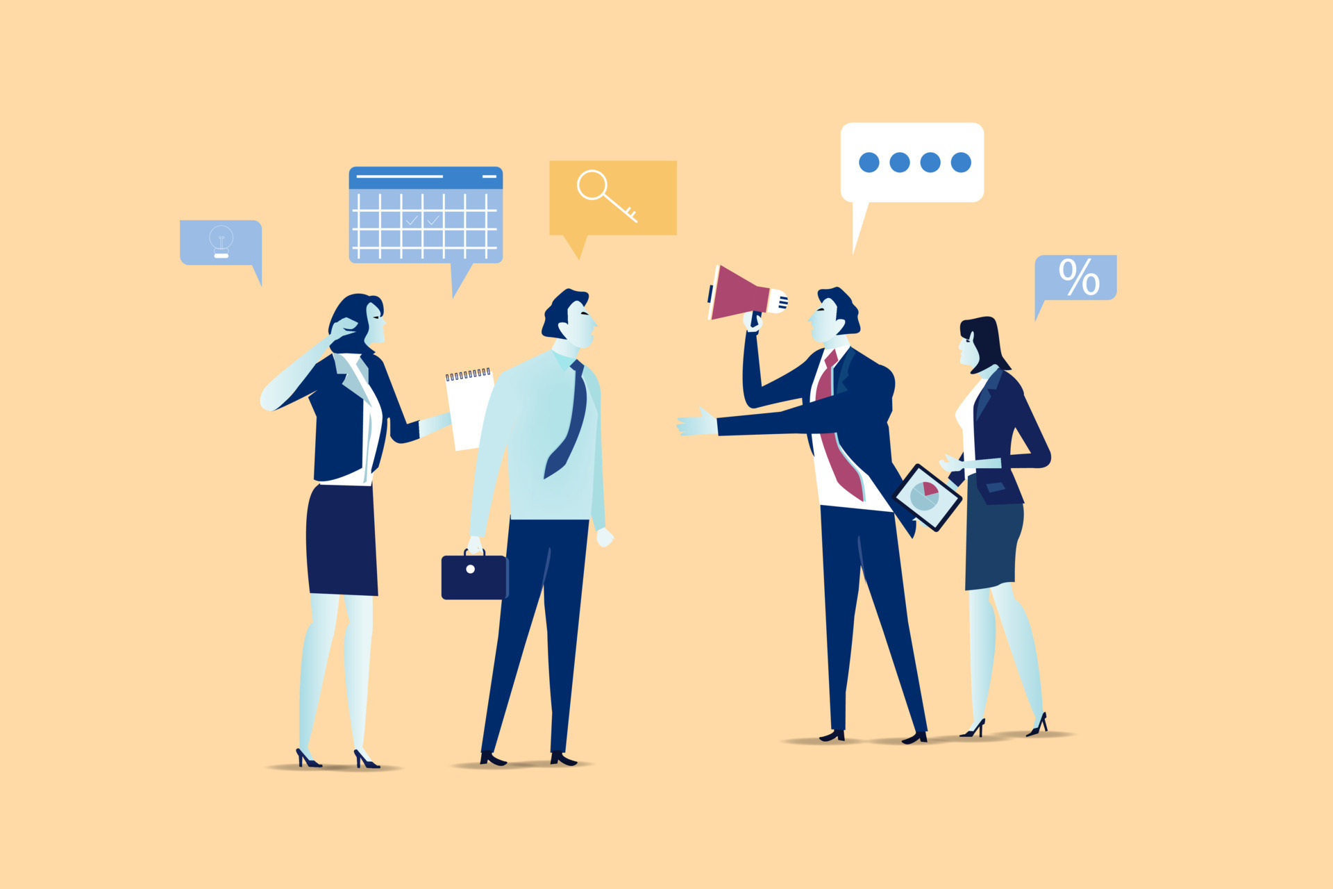 Business Team Working In Progress People With Lots Speech Bubbles And