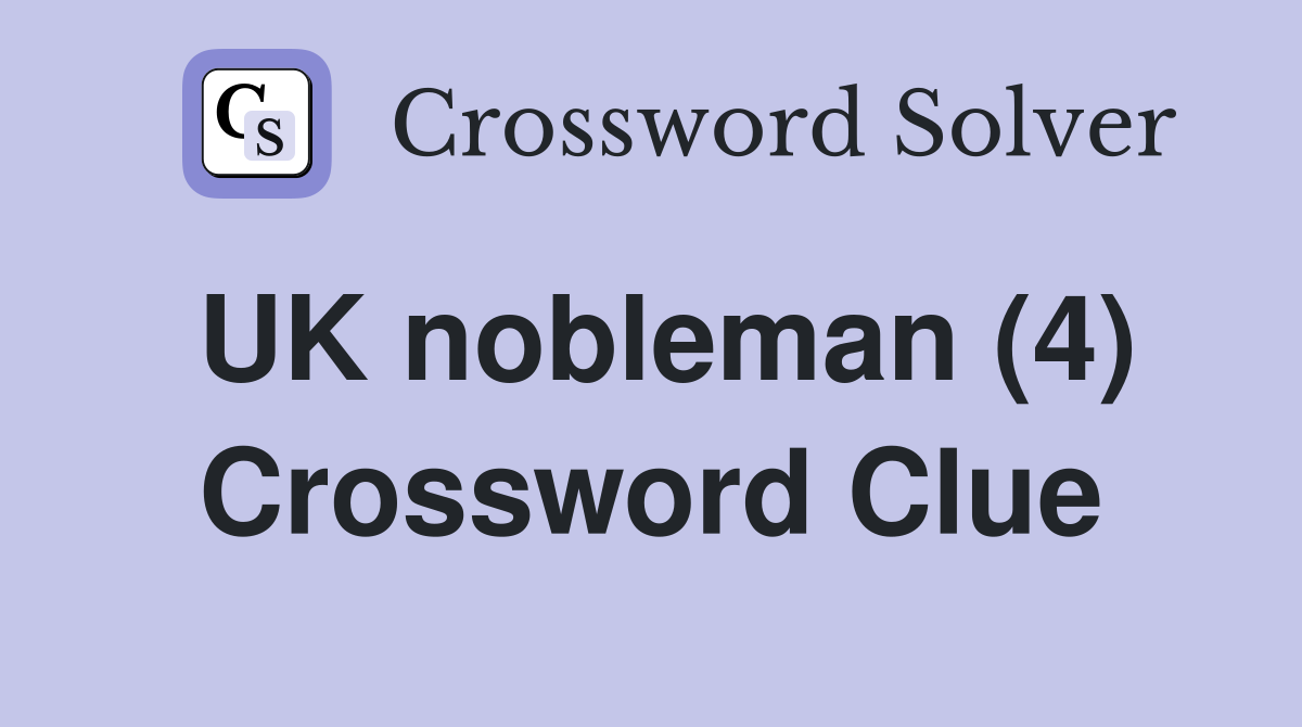 UK nobleman (4) Crossword Clue Answers Crossword Solver