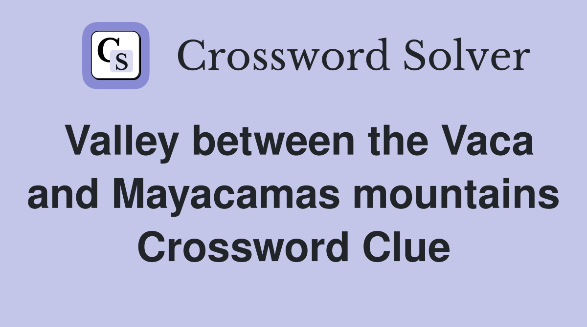 Valley between the Vaca and Mayacamas mountains Crossword Clue