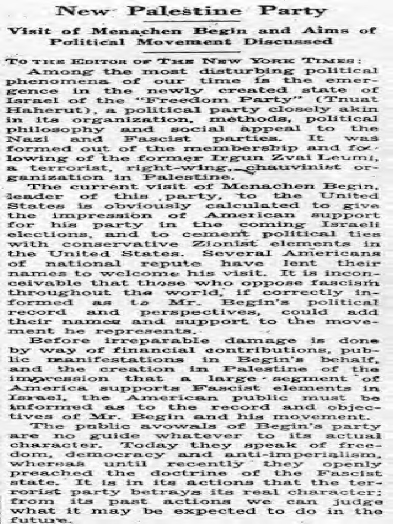 Einstein Letter NYT 4 Dec 1948 Text PDF Jewish Movements Jews And