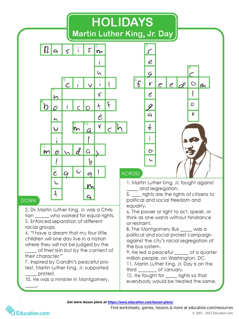 Crossword PDF Martin Luther King Jr Movements For Civil Rights