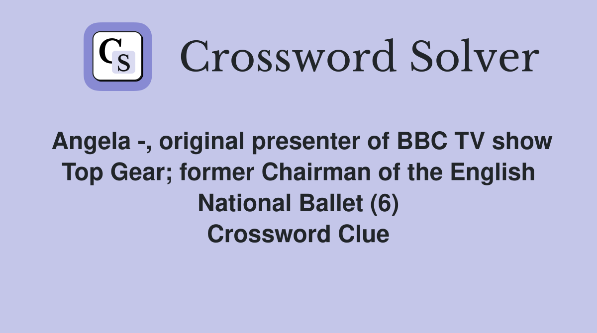 Angela original presenter of BBC TV show Top Gear former Chairman