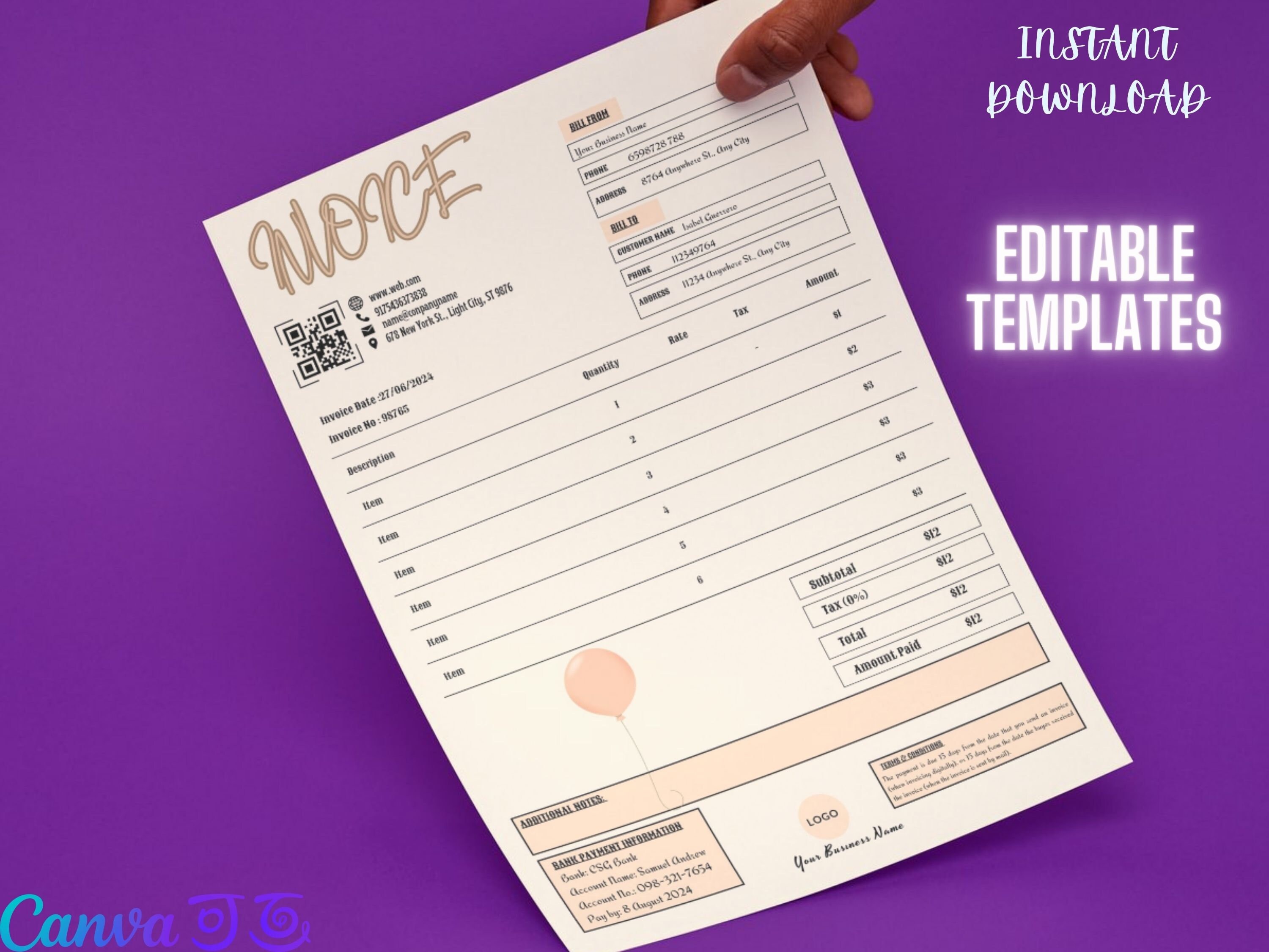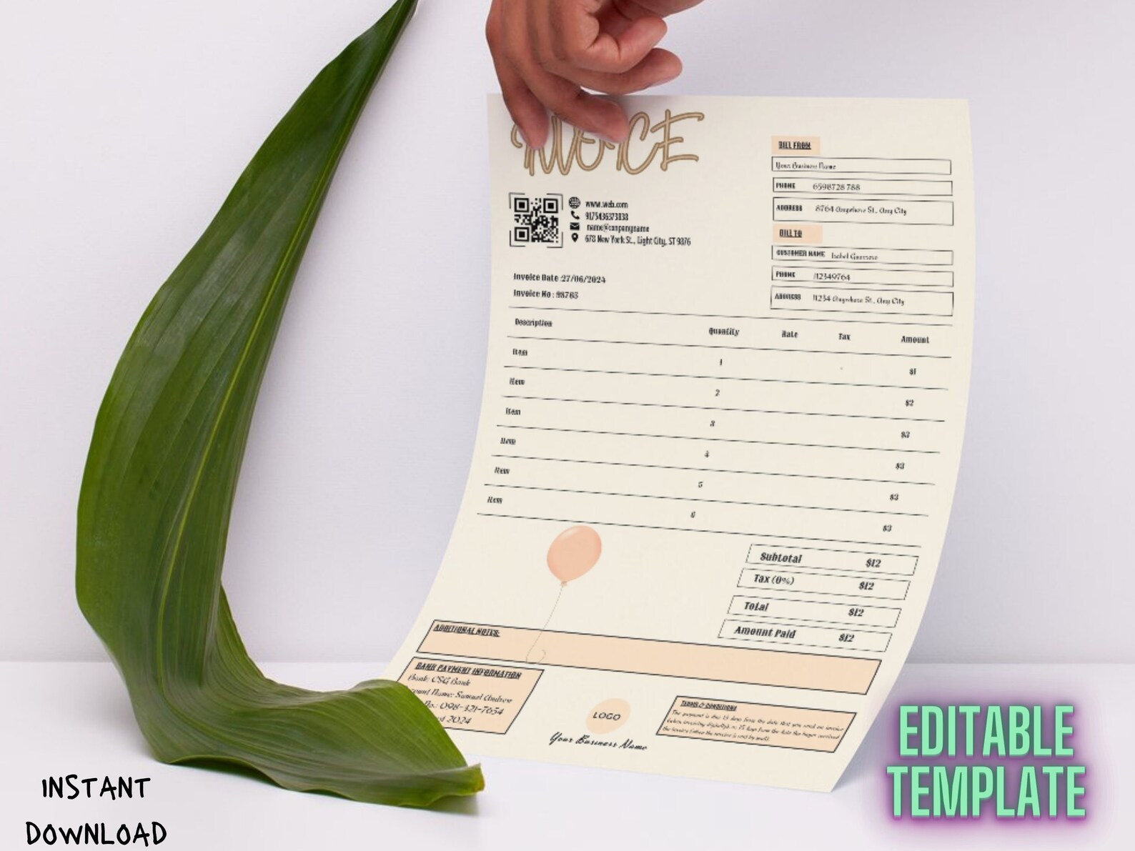 BALLOON INVOICE TEMPLATE Editable Balloon Artist Invoice Etsy