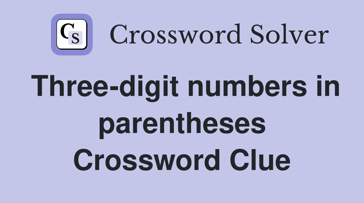 Three digit numbers in parentheses Crossword Clue Answers Crossword