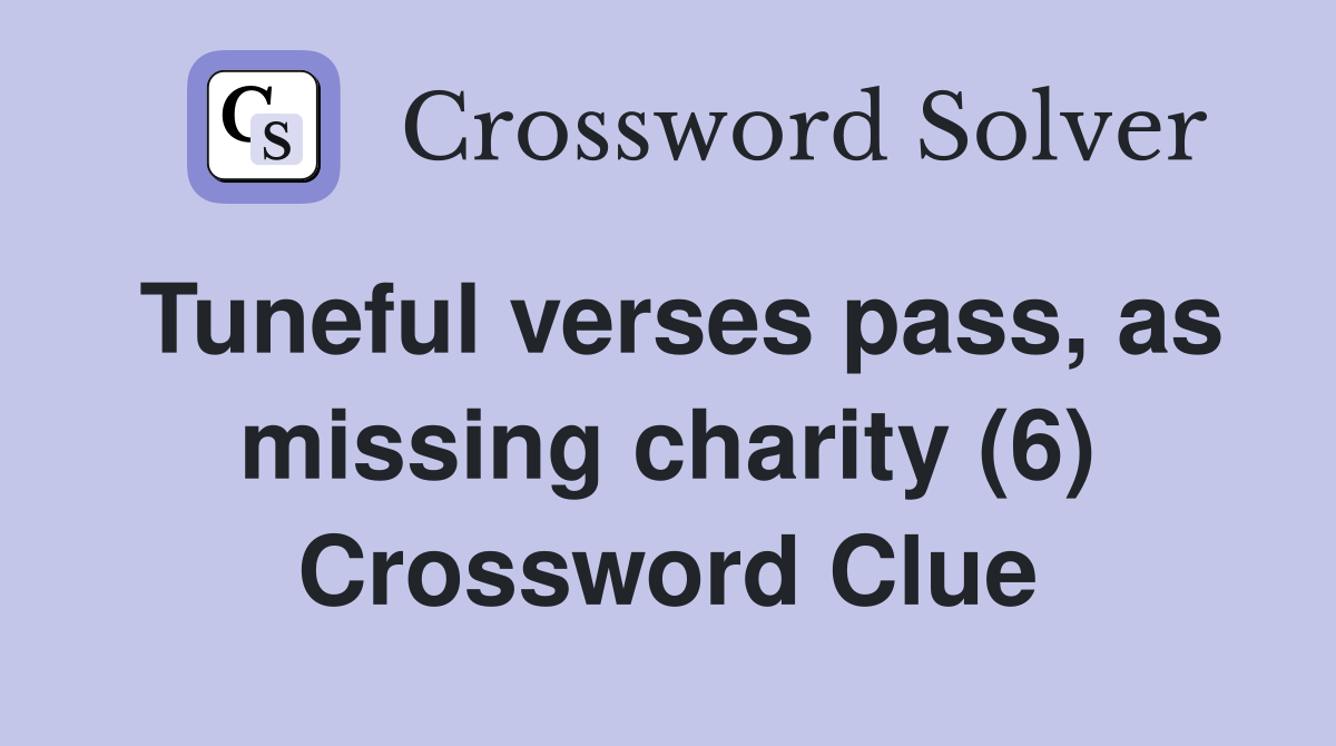 Tuneful verses pass as missing charity (6) Crossword Clue Answers