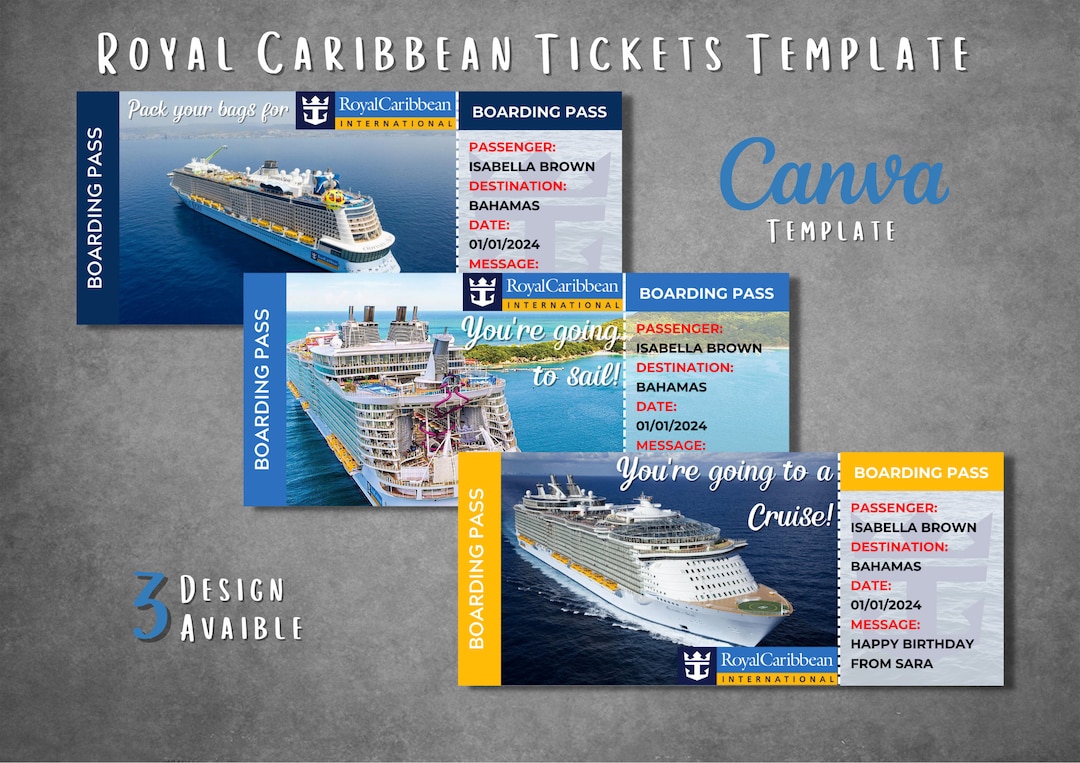 Editable Royal Caribbean Cruise Surprise Tickets Templates Printable