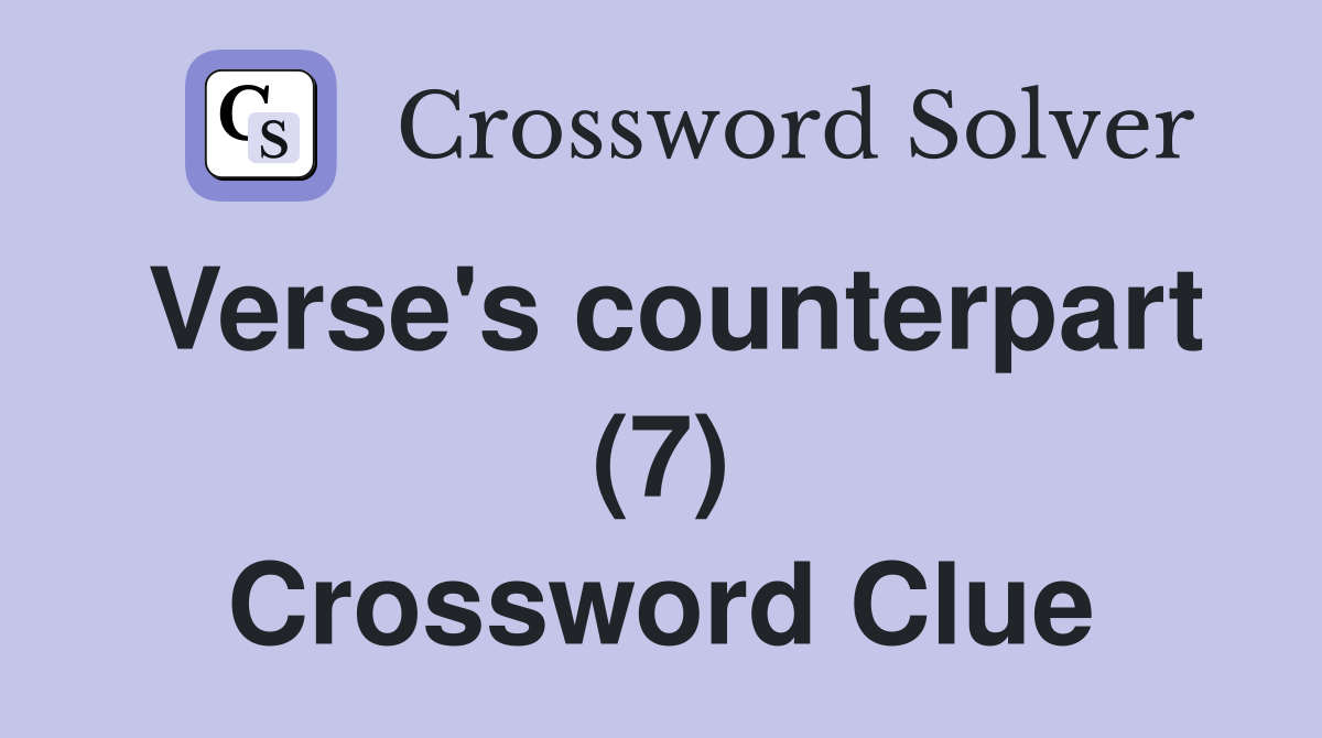 Verse #39 s counterpart (7) Crossword Clue Answers Crossword Solver