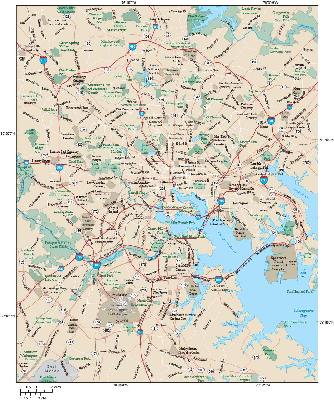 Baltimore Map Detailed Map of Baltimore City Stock Illustration