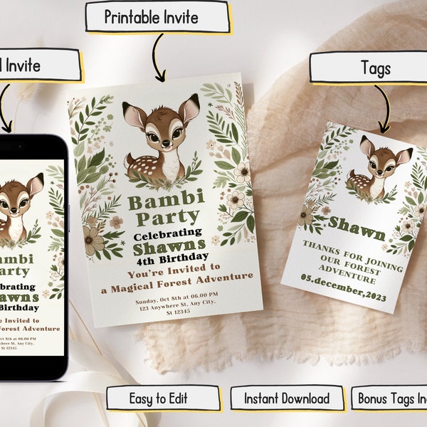 Deer Birthday Invitation Bambi Invitation Editable Template Etsy